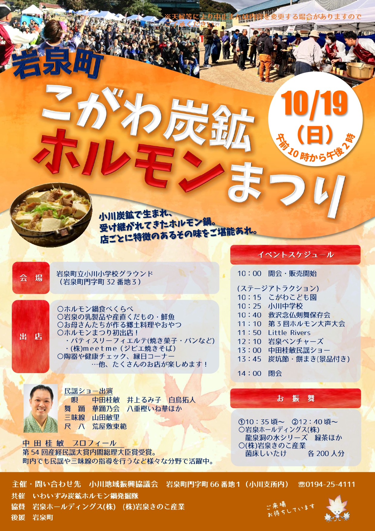 10月19日(日)、こがわ炭鉱ホルモンまつりを開催します。