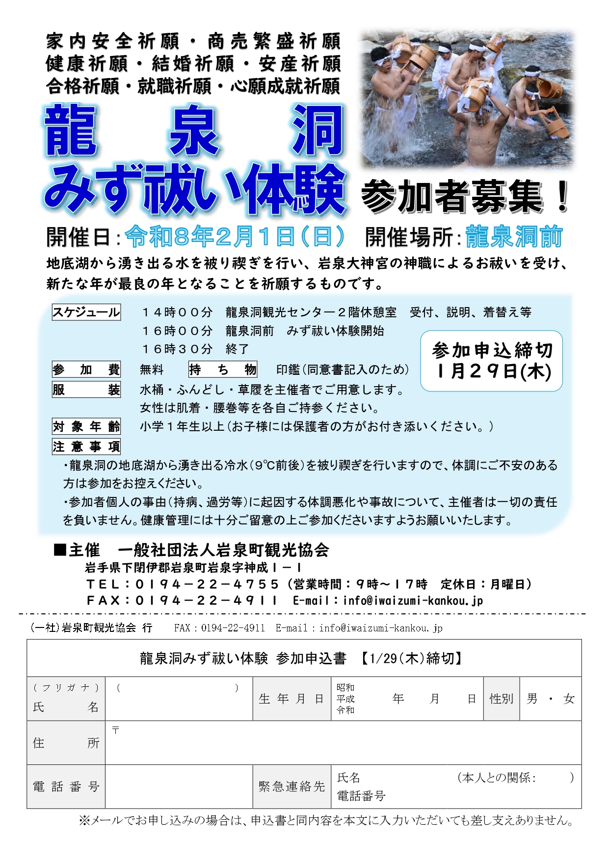龍泉洞みず祓い体験 参加者募集!(2/1)